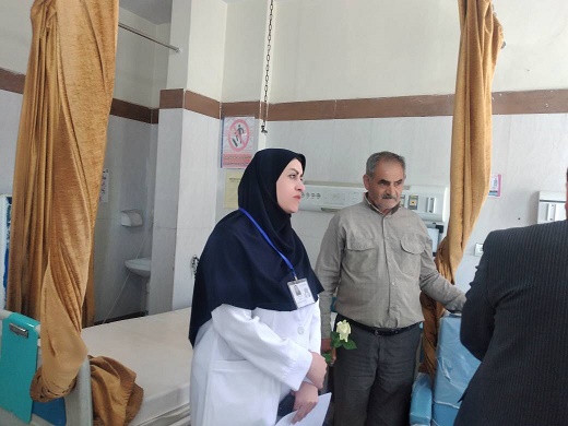به مناسبت هفته سالند اهدا گل رز سفید به سالمندان بستری در بیمارستان امام جعفر صادق (ع)سعادت شهرتوسط رئیس شبکه بهداشت ودرمان دکتر «جواد هوشیار »و مدیر بیمارستان «علی اصغر مهرآور »و حراست بیمارستان «علی محمد کشتکار »و مترون بیمارستان «راضیه خدایار »/به روایت تصویر