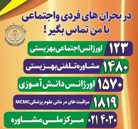 در مواجهه با بحرانهای روانی و اجتماعی، خدمات مشاوره و اورژانس روانی در کنار شما هستند. تماس با مراکز تخصصی، نخستین گام بهسوی آرامش و سلامت روان است.