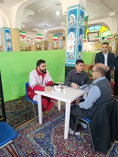 میز خدمت درحرم مطهر امامزاده حسین(ع) سعادت شهر به مناسبت دهه مبارک فجر